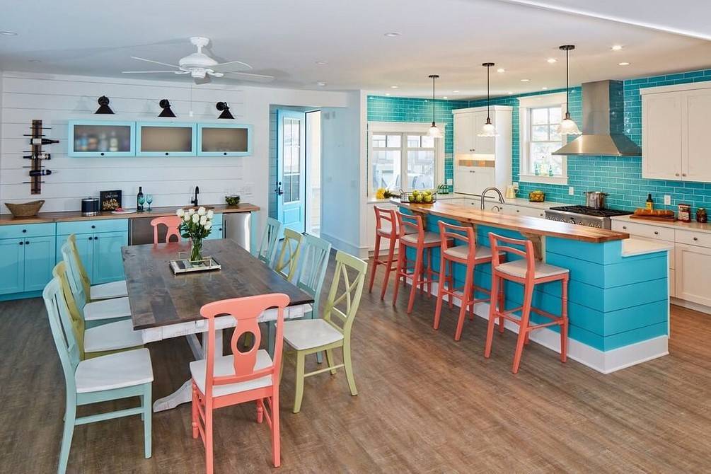 Основной фон должен быть таким, чтобы на нем красиво смотрелись и привлекали внимание другие цветные акценты. Не выбирайте главным темный или яркий цвет при оформлении кухни