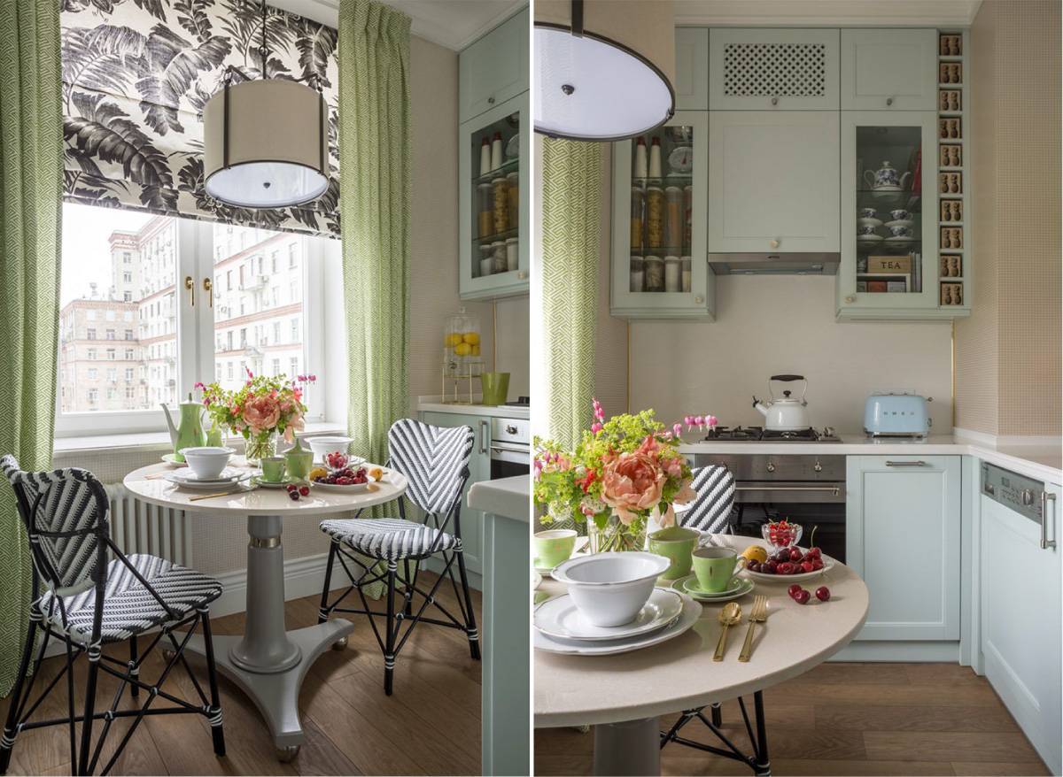 Темная бирюза и насыщенный зеленый с хромированными элементами интерьера на кухнеИсточник legko.com