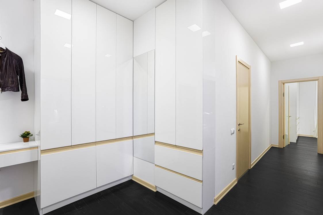 Чтобы из-за последней прихожая в белых тонах преждевременно не изнашивалась, приходится обращать внимание на искусственные отделочные материалы. Кроме того, такая отделка приветствует уход, и поэтому выделяется длительным периодом эксплуатации