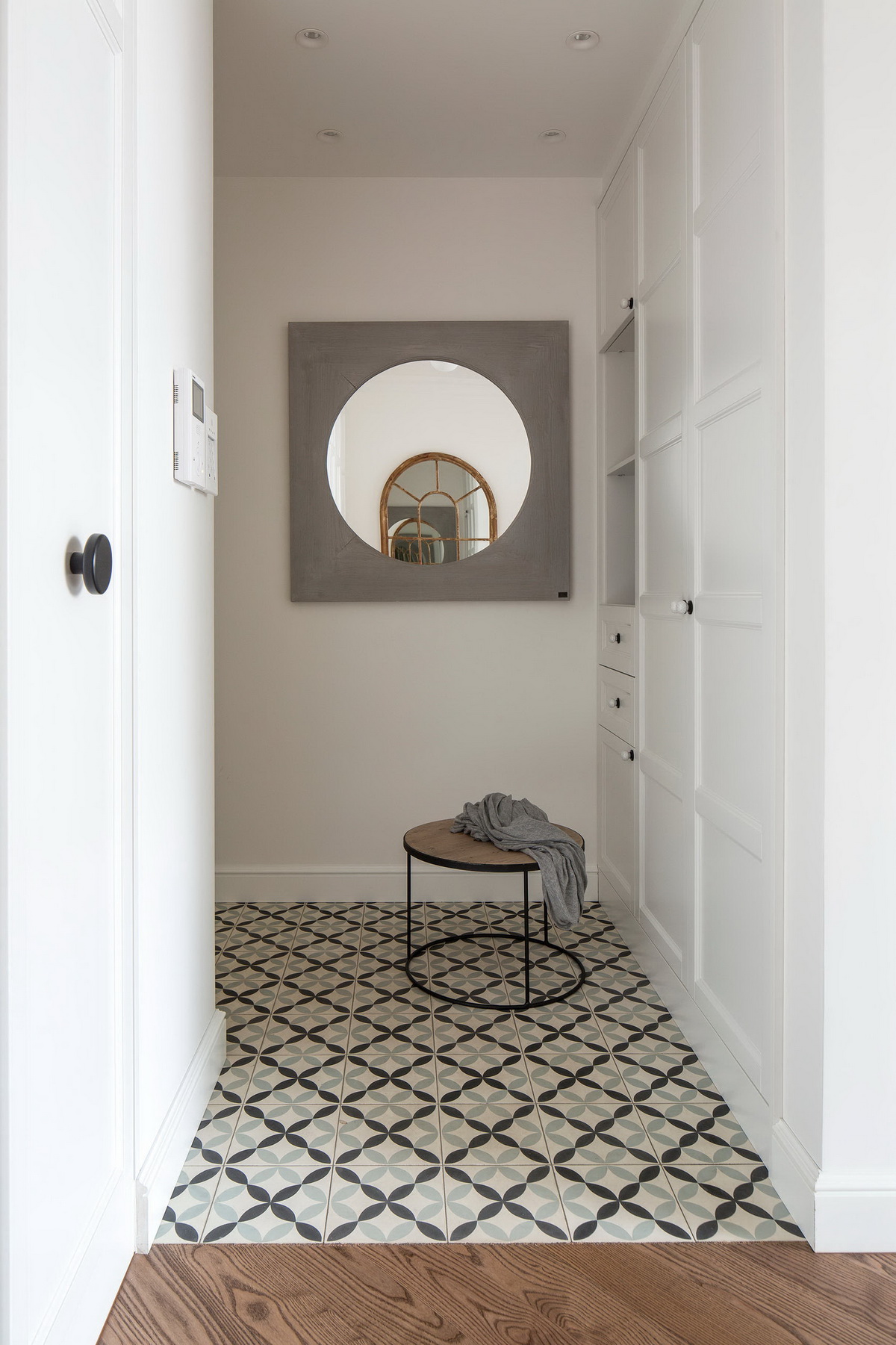 Поскольку — это первая комната в которую мы заходим с улицы, не целесообразно для отделки пола выбрать светлую плитку. Пол самое быстро загрязняемое место, поэтому идеальный цвет для напольного покрытия темный: коричневый, серый и т.п.