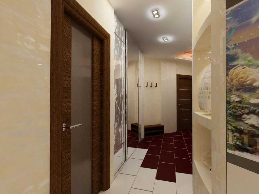Правильно расположенные светильники по центру длинных стен тоже создадут световое затемнение у торцов. Фото дизайна прихожей для узкого коридора помогут правильно сориентироваться с оформлением и подобрать нужный вариант.