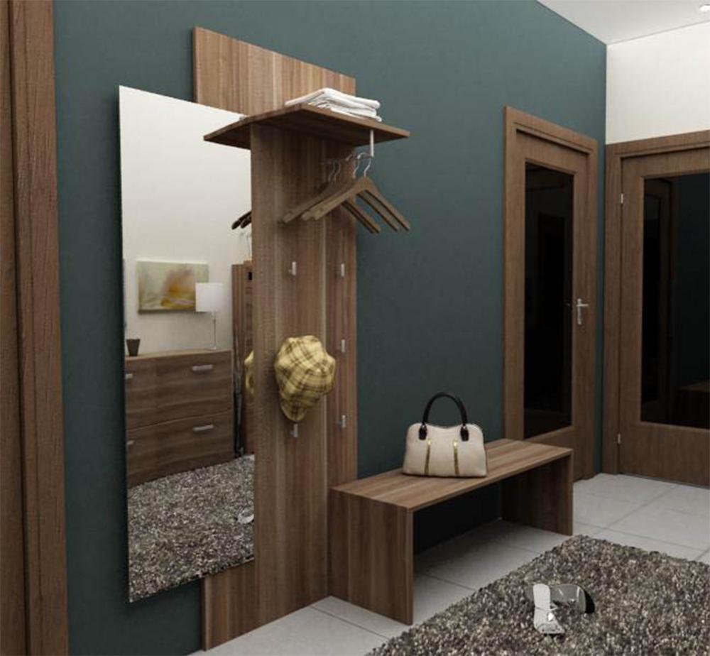 – вешалка у стены (лучше, если есть полка для головных уборов);