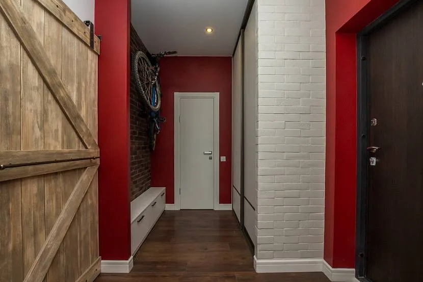 Белый и красный в прихожей лофт стиля ‒ идеальное сочетание для гармонии и энергичности Источник design-homes.ru