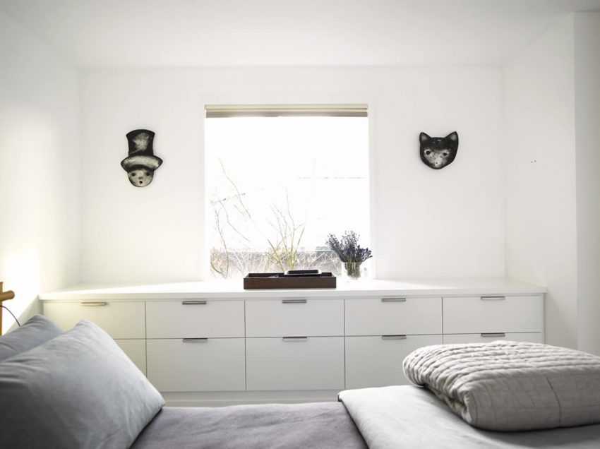 Нависающие над головой шкафы будут вызывать тревогу и дискомфорт. Продумайте систему хранения так, чтобы область над изголовьем кровати оставалась свободной.