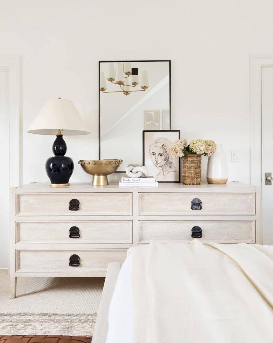 В комнате собран базовый комплект предметов. От всего лишнего целесообразно отказаться. Дополнить картину легко аксессуарами, но их используют в минимальном количестве.