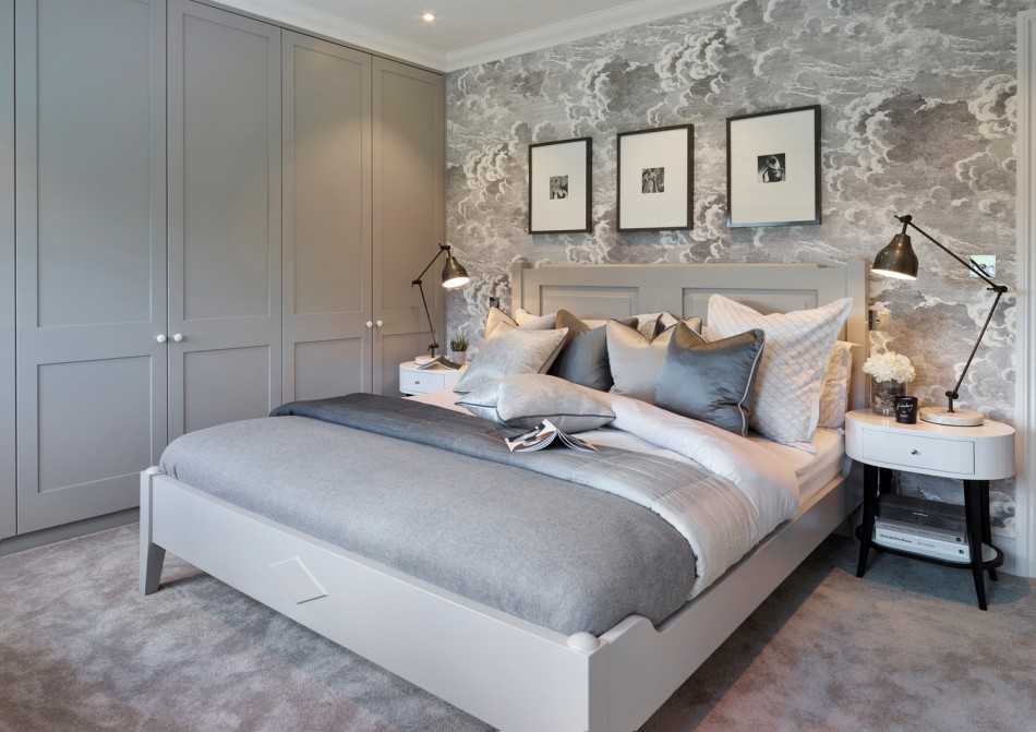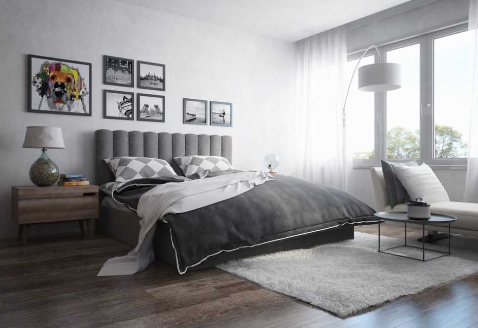 Серые тона при оформлении помогут владельцу расслабиться и насладиться спокойным, глубоким сном