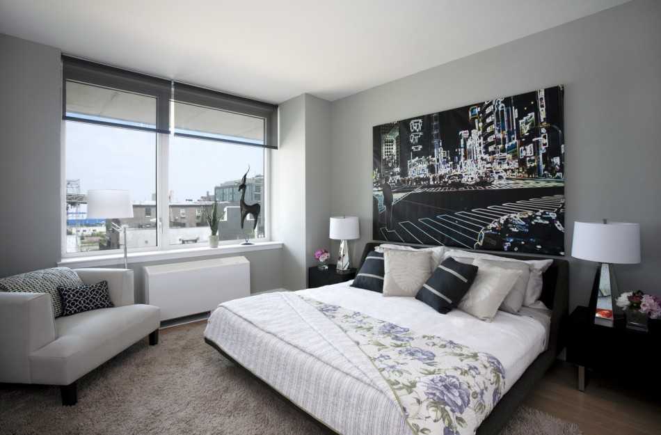Для обеспечения прохода к вашей кровати с двух сторон, расположите ее по центру. Если ваша планировка не позволяет этого сделать, то кровать рекомендуется поставить в угол. Это сэкономит место.