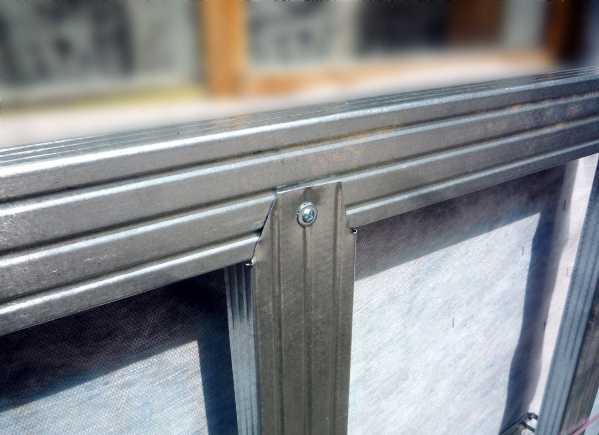 Все элементы соединяют саморезами по металлу.