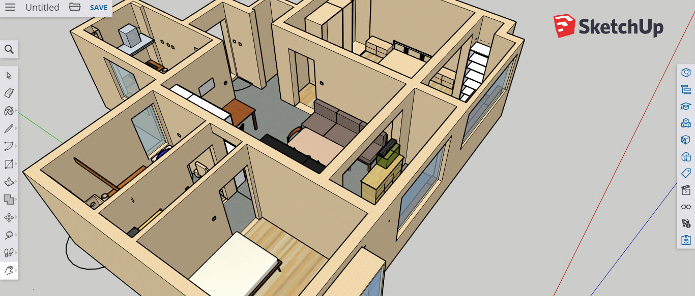 Веб-приложение имеет три платные версии: Shop, Pro и Studio. SketchUp Pro лучше всего подходит для дизайнеров интерьера и позволяет пользователям планировать и создавать точные 3D-модели, используя обширную библиотеку объектов с материалами, уникальными поверхностями и текстурами.