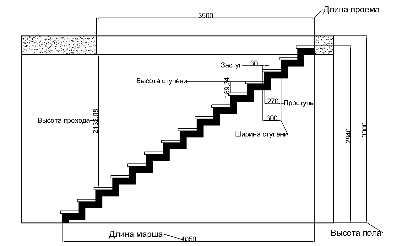 При расчете лестницы, необходимо определить сначала ее основные параметры, такие как лестничный марш, угол наклона, ширина ступеней, наличие ограждений, длина самой лестницы.