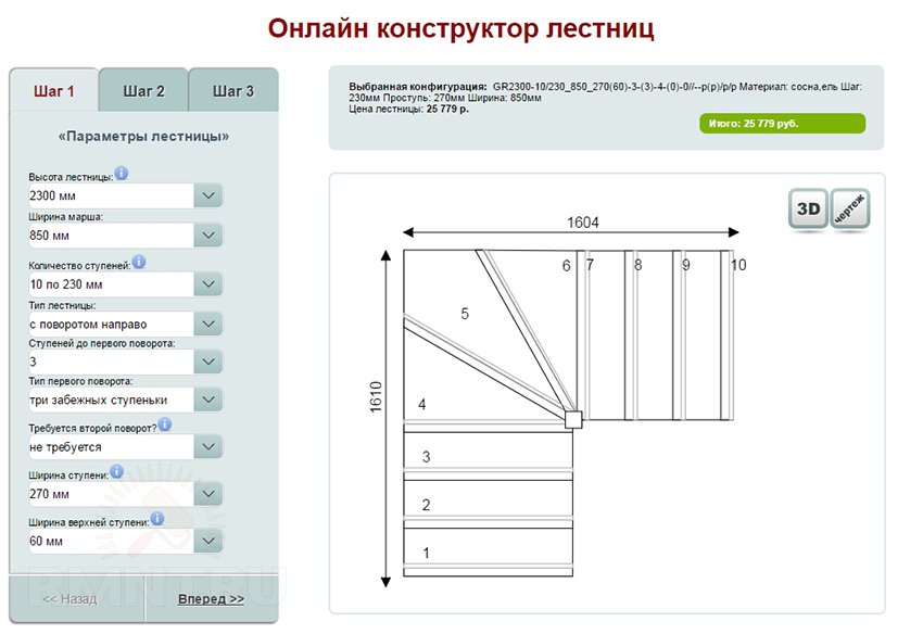 Сервис удобен тем, что без проблем можно проработать несколько вариантов лестницы и нет необходимости прорисовывать.