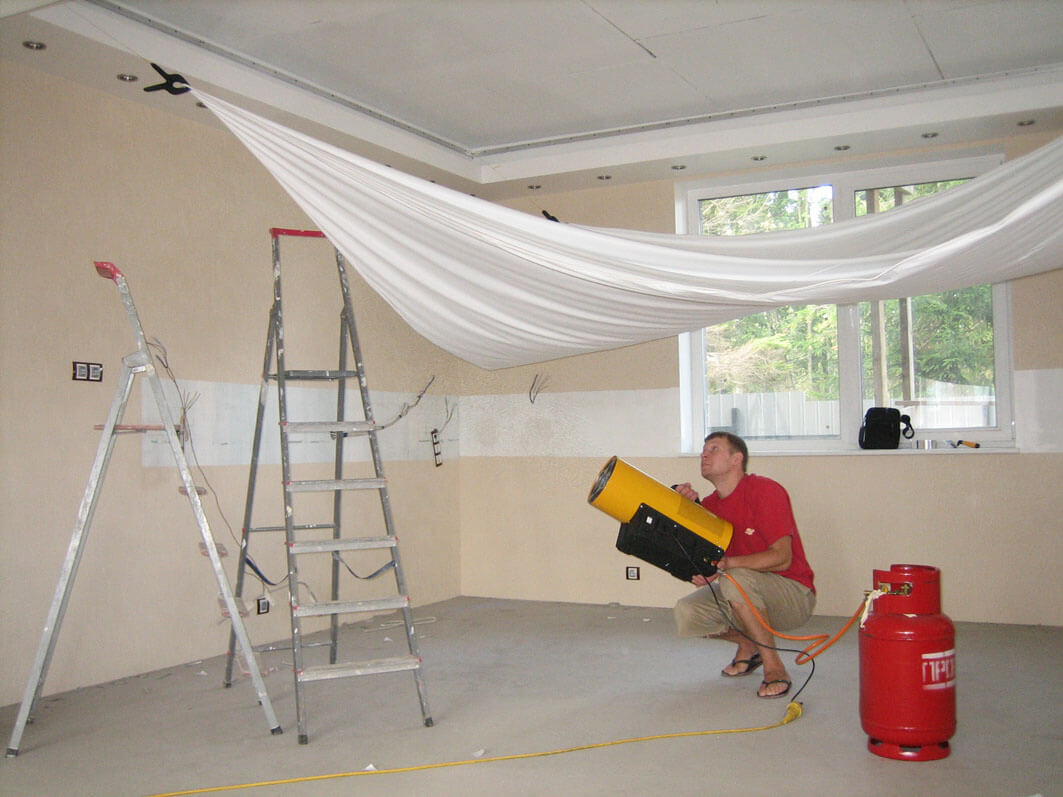 ПВХ-полотно подвержено воздействию температуры: от жары увеличивается в размере, а при остывании происходит усадка. Это свойство используют во время установки, чтобы получить ровную поверхность.