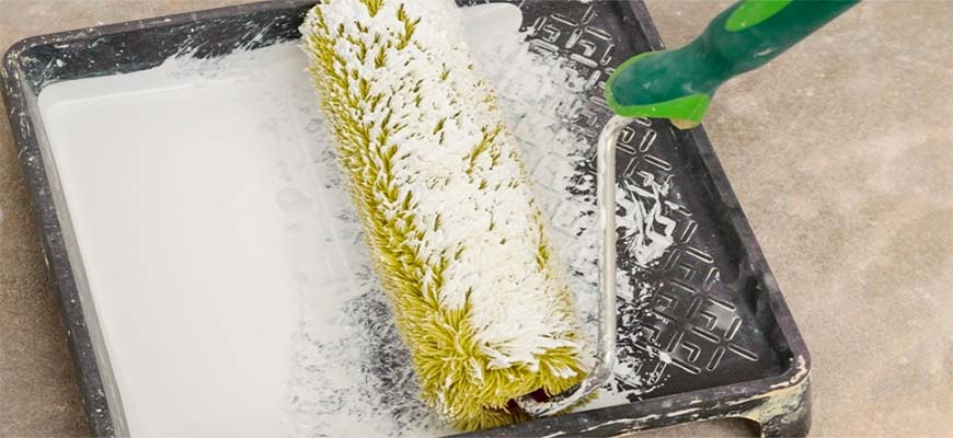- Окрашивание проводится при помощи: кисти, валика с длинным, или коротким ворсом, поролоновой губкой, или краскопультом.