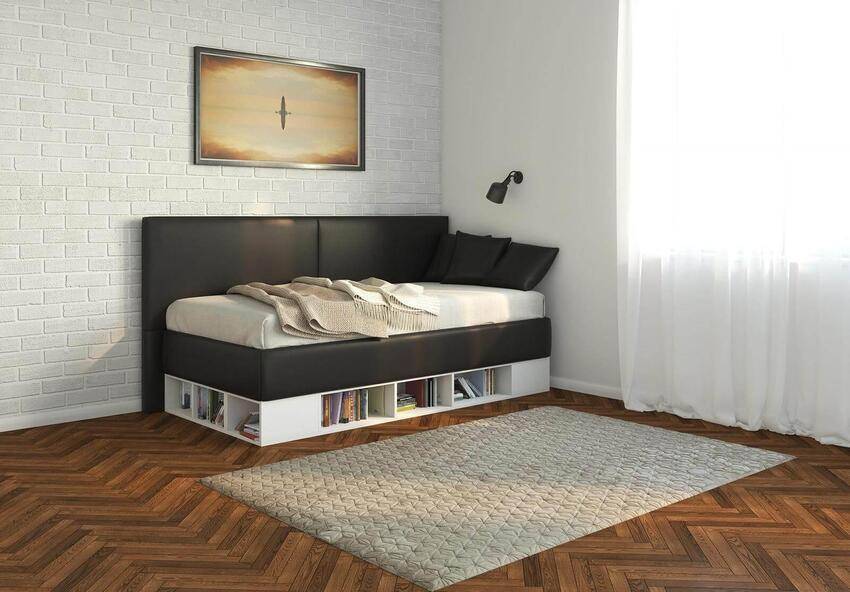 Благодаря такому выбору, нет необходимости пользоваться прикроватными тумбочками: у владельцев кровати все важные предметы находятся под рукой.