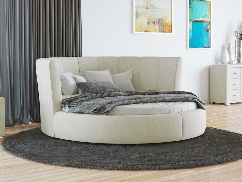 Круглая кровать в спальне является не только функционально значимым предметом, но и выполняет важную декоративную роль.