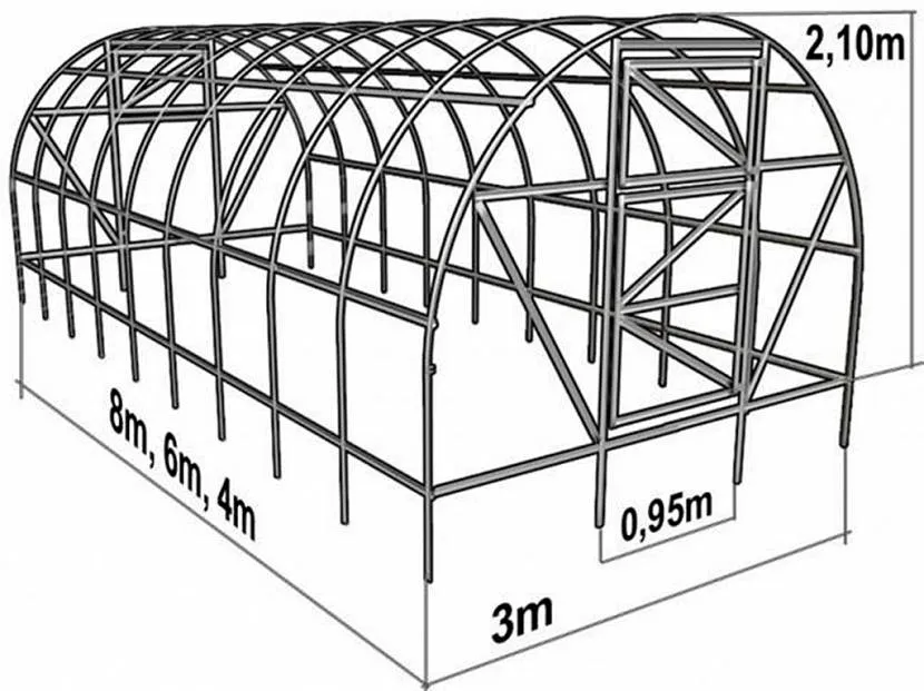 Чертеж арочной теплицы из поликарбоната Источник stroymoda-nk.ru