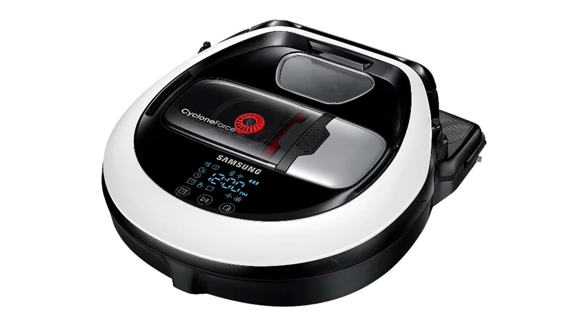 Робот-пылесос Samsung VR10M7030WW очищает твердые поверхности и ковровые покрытия до 1,5 см. Времени работы от одного заряда хватает на уборку двухкомнатной квартиры. Удобно, что в комплекте идет пульт дистанционного управления, не нужно каждый раз подходить к пылесосу, чтобы поменять направление или программу.