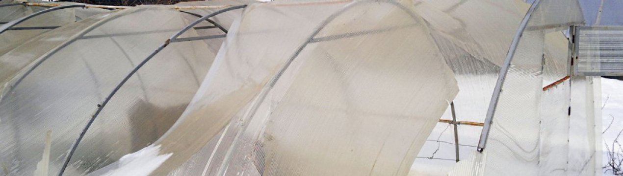 Прежде чем заклеить поликарбонат на теплице, тщательно оцените характер повреждений. При больших масштабах заклеивание или нанесение скотча может быть неэффективна — причина здесь кроется в ослаблении конструктивной просторности листа. Поэтому во избежание в дальнейшем серьёзного повреждения парника снежным покровом рекомендуется ремонтировать его с помощью металлической ленты, прикрепляя заплатки с помощью болтовых соединений.