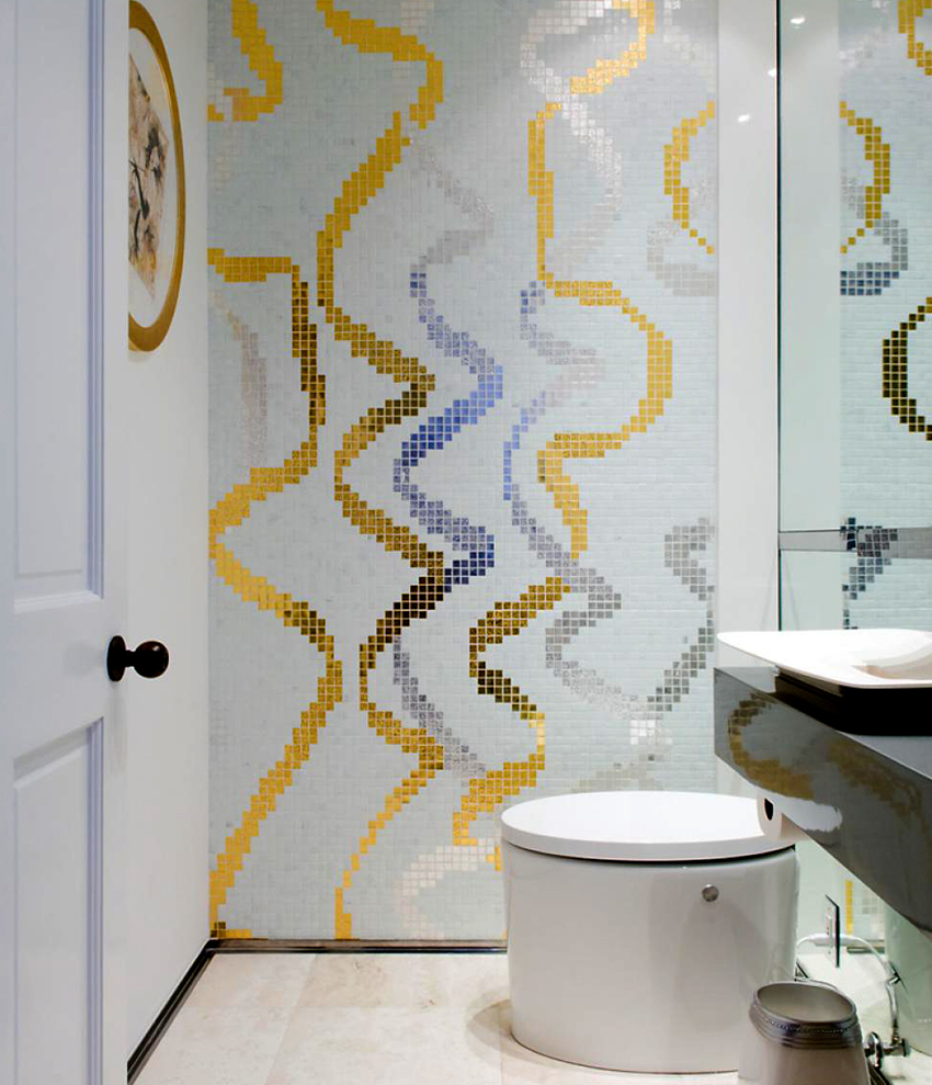 Оригинальная отделка туалета плиткой маленького размера