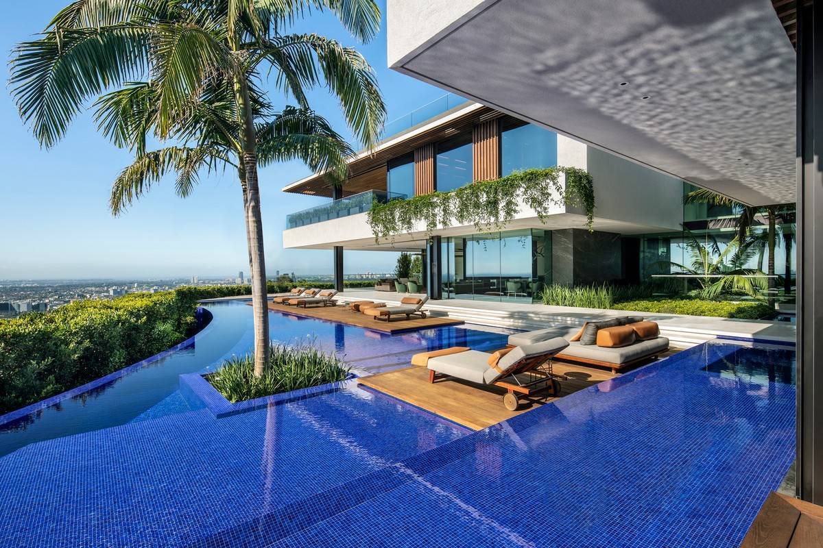 Дом на склоне холма был задуман не как обычный дом, а как роскошный оазис с многоуровневым пейзажным бассейном и потрясающим видом на калифорнийские пейзажи. Поместье, в котором построена резиденция, представляет собой участок на холме площадью 1858 квадратных метров, главным достоинством которого являются впечатляющие панорамные виды. Современная архитектура здания, изобилующая креативными решениями, выдержанными в стиле хай-тек, определяется плавающими, перекрывающимися горизонтальными плитами пола и крыши, которые поддерживают определенные оси обзора.