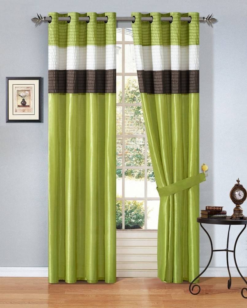 Для акцентирования занавесок подойдут такие подобранные цвета, как малиновый, фиолетовый, зеленый и множество других тонов.
