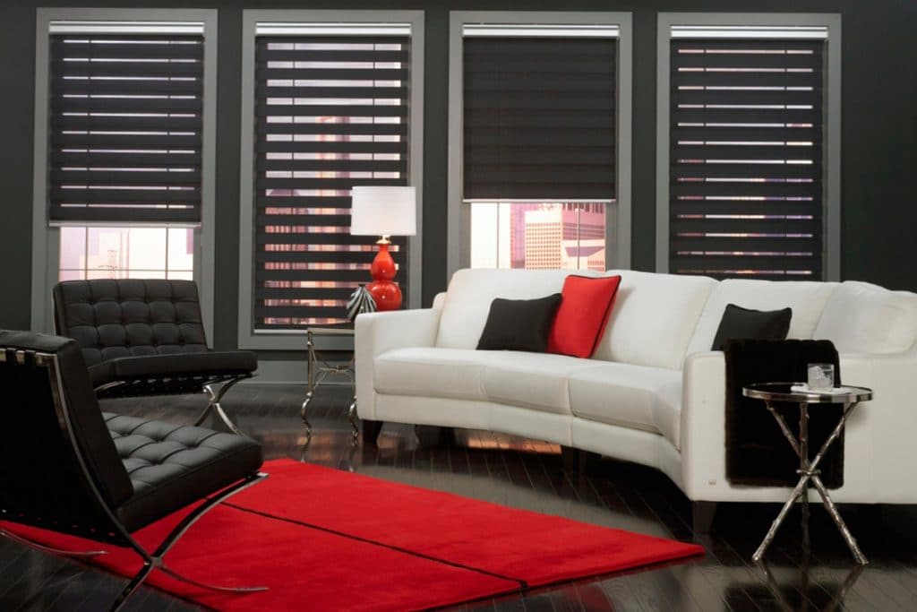 Черные рулонные шторы красиво смотрятся в интерьере с любым стилем, часто используется для подчёркивания других цветов, вследствие чего комната выглядит очень стильно и современно. Но сильно увлекаться данным цветом не стоит во избежание мрачности.