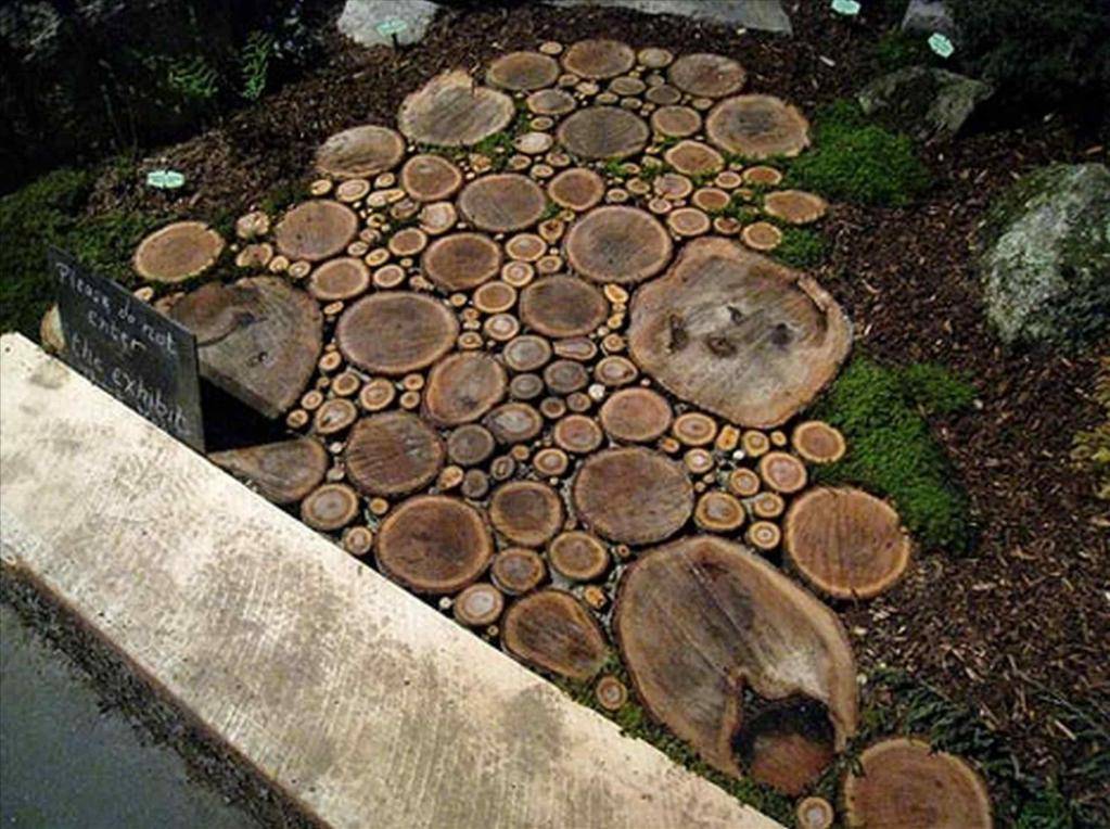 Спилы дерева или пеньки можно использовать для создания оригинальных дорожек для вашего сада. При изготовлении таких дорожек следуйте пошаговой инструкции: