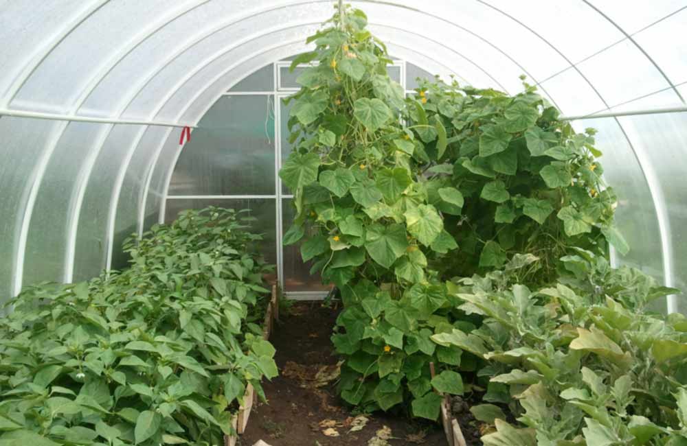 Для возделывания нескольких различных культур должно быть предусмотрено обустройство отделений с конкретными характеристиками. Добиться этого будет непросто, поэтому чаще всего теплицу отводят под одну или две родственные по агротехнике культуры. Вместе с огурцами сажают бахчевые и укроп, одновременно с перцем выращивают редис и салаты.