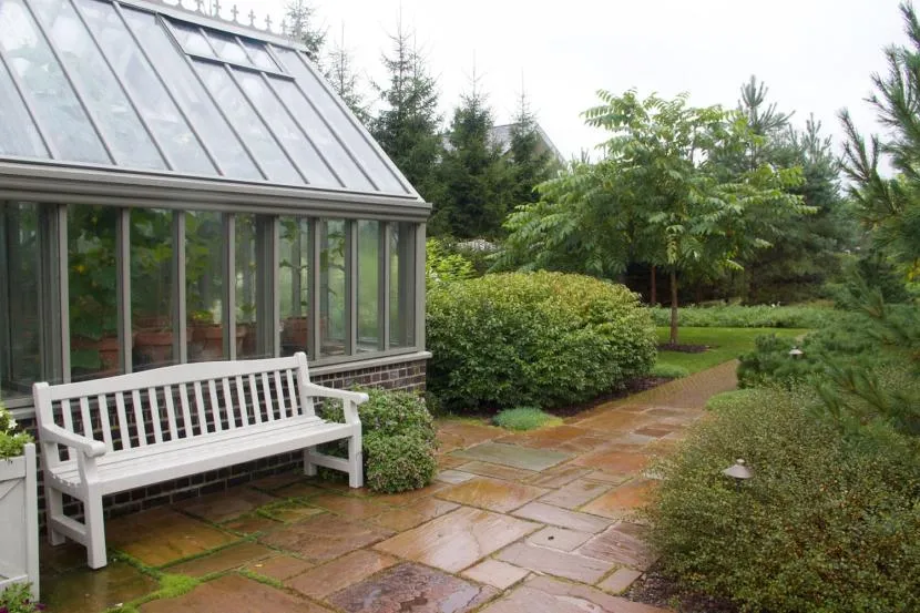Если сад напоминает традиционную усадьбу – подчеркните этот стиль с помощью теплицы. За образец возьмите готические или викторианские оранжереи. Их стройность и вытянутые линии отлично будут оттенять высаженные рядом туи и можжевельники, в остеклении хорошо будут выглядеть стрельчатые окна.