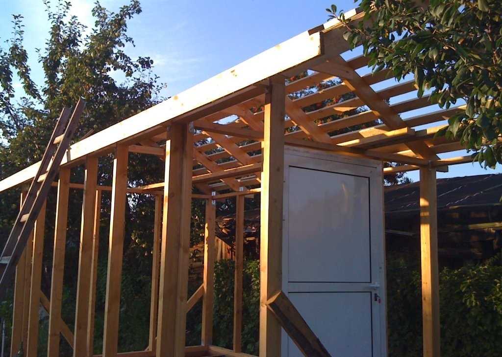 Крыша. Материалом для кровли может стать шифер. Используя поликарбонат, крышу продляют, создавая таким образом навес. Оптимальной конструкцией крыши с точки экономии времени и финансов станет односкатная кровля.