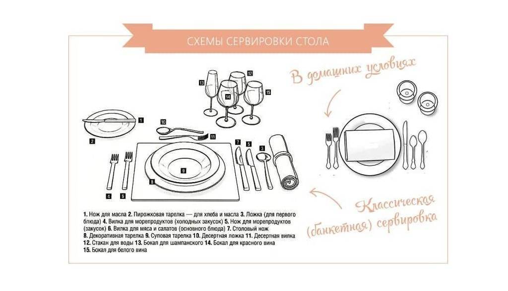 - Расположение столовых приборов возле тарелок – строго в определенной последовательности.