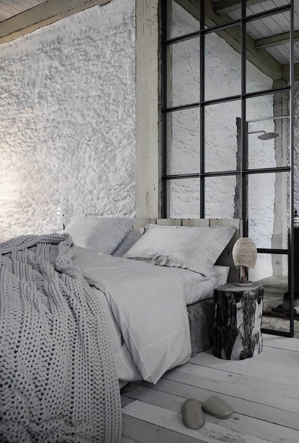 В монохромном интерьере обои могут быть рельефными, имитирующими декоративную штукатурку. А из гипсовой штукатурки с помощью несложных техник можно сделать имитацию под бетон.
