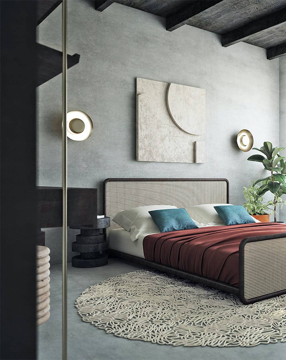 Для спальни часто выбирают приглушенные цвета. Чтобы добавить свежести в интерьер, останавливаются на сером тоне с добавлением синего оттенка.