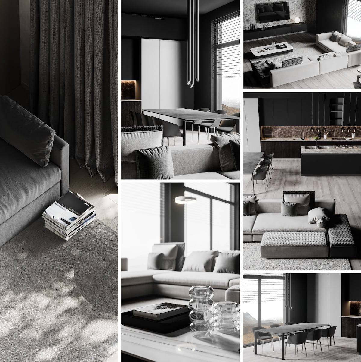 Темно-серый цвет прекрасно сочетается как с крупными, тяжелыми предметами, так и одновременно с тонкими прозрачными тканями, металлическими декорами и аксессуарами, любым узором. Независимо от выбранного стиля, оттенки серого всегда будут актуальны и органично впишутся в декор любой комнаты.