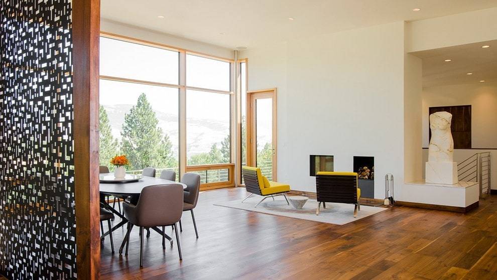 При правильной интеграции серого ламината в современный интерьер можно выдвинуть его на первый план и сделать основным акцентом, привлекающим внимание. Следует помнить о способности серого цвета влиять на визуальное восприятие габаритов пространства и использовать ее в свою пользу – с помощью темных оттенков просторное помещение можно сделать компактнее и уютней, а при помощи светлых тонов зрительно расширить границы