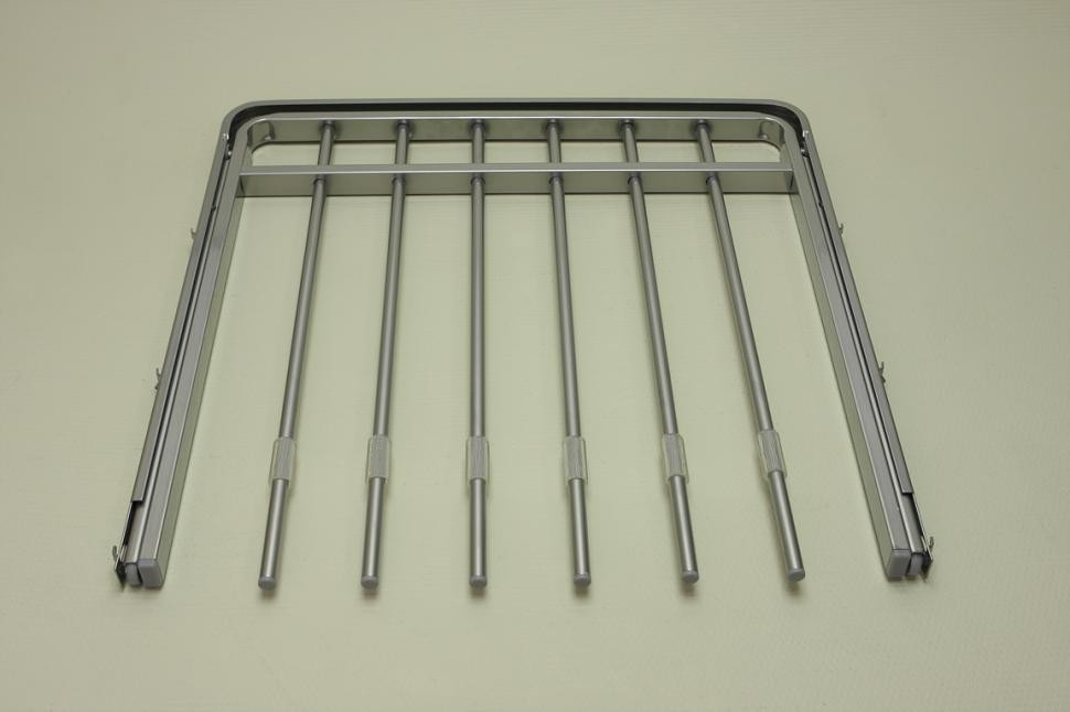 Любая выдвижная корзина может исполняться из сетчатой прочной ткани. Ее глубина варьируется от 8,18 до 28 см. Такая мелкая деталь, как брючница, выполнена в роскошном цвете платины в сочетании с белым. Она позволит не помять ни одну вашу вещь и всегда быть готовым к завтрашнему рабочему дню.