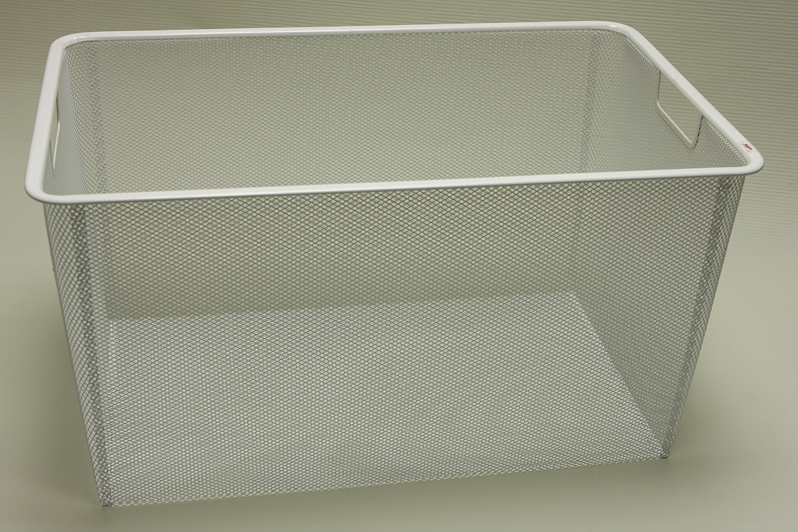 Ширина корзин и ящиков обычно составляет от 25 до 90 см. Параметры должны быть немного меньше, чем у полок, на которых они установлены. Глубина – от 8 до 28 см. Высота – не более 38-40 см. Что касается сотовых корзин, размер квадратных ячеек может начинаться от 2 х 2 мм и заканчиваться 20 х 20 мм.