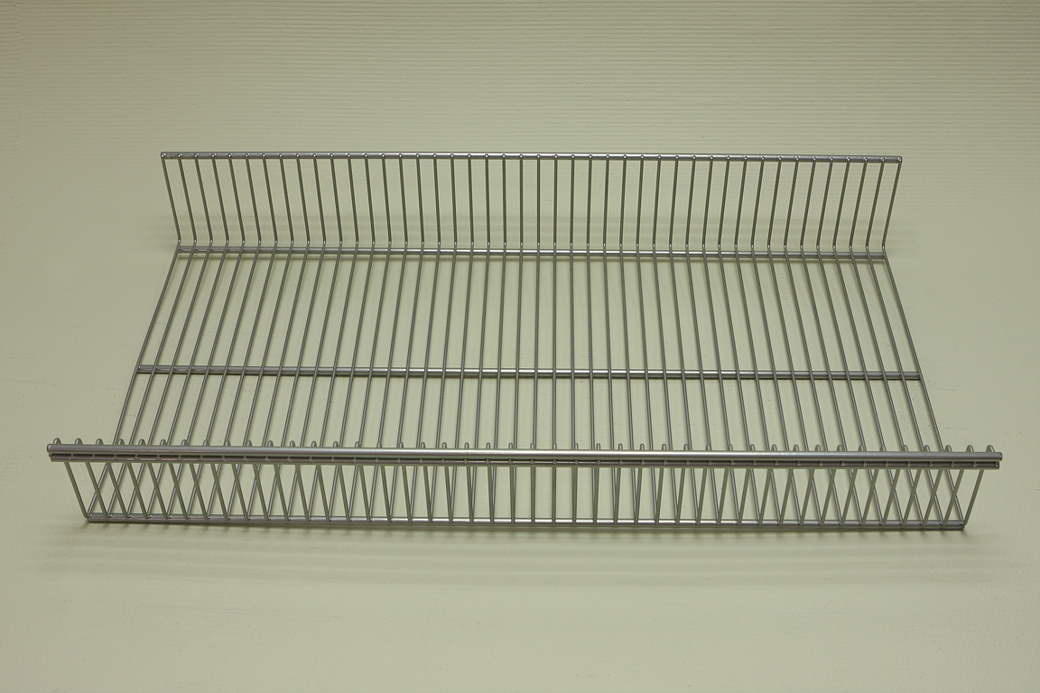 Сетчатая корзина это выдвижная корзина, которая устанавливается в стеллаж. Корзины выпускают на 1, 2, 3 рельса, шириной 25, 35, 45, 55 см, то есть по ширине поперечин. По глубине 2 типа корзин – стандартная 54 см и так называемый мини – 44 см. высота 80, 180, 280 мм.