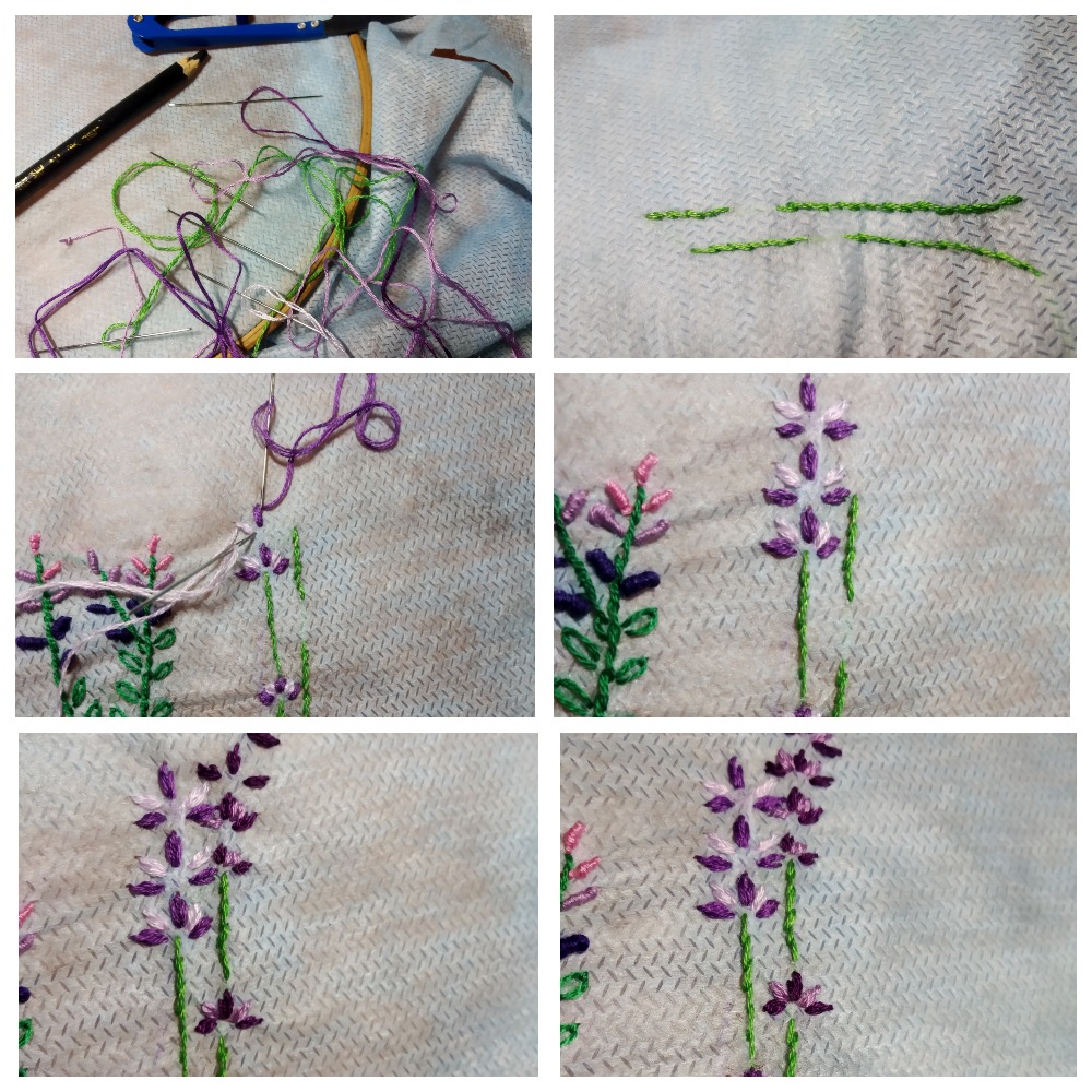 Вышивка лаванды гладью