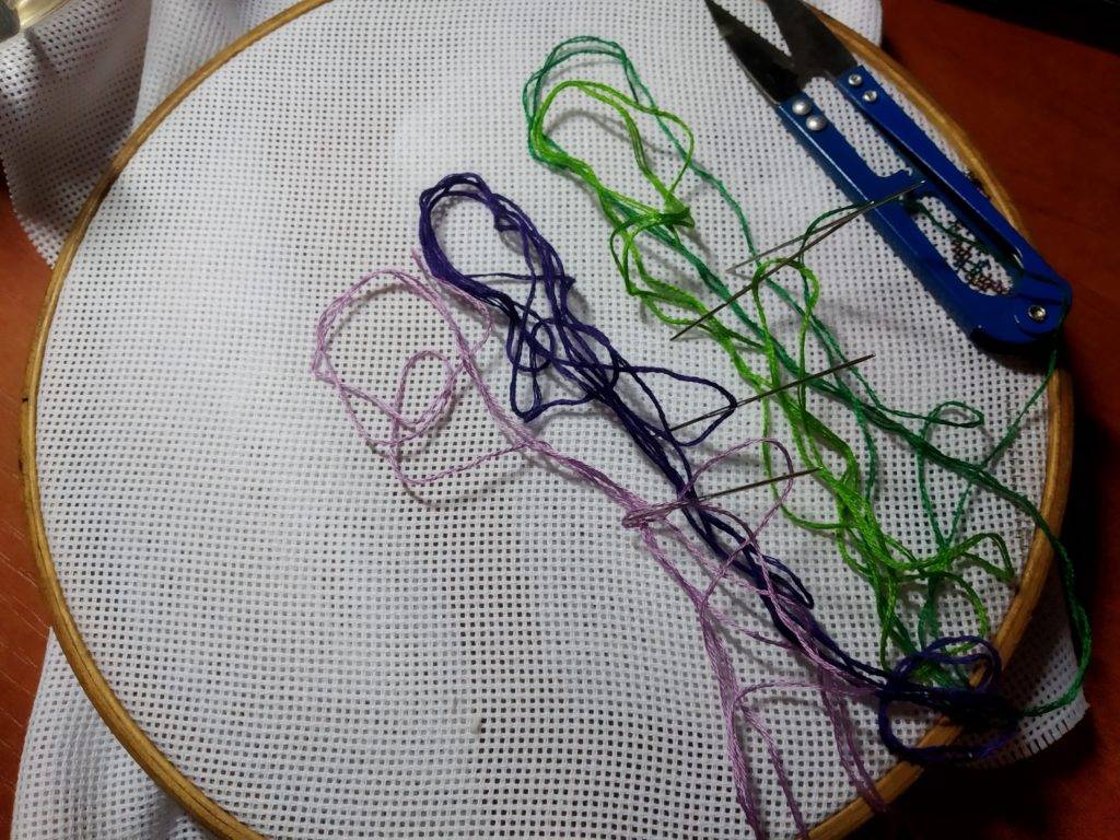 - Нитки мулине лавандового оттенка для создания рисунка.