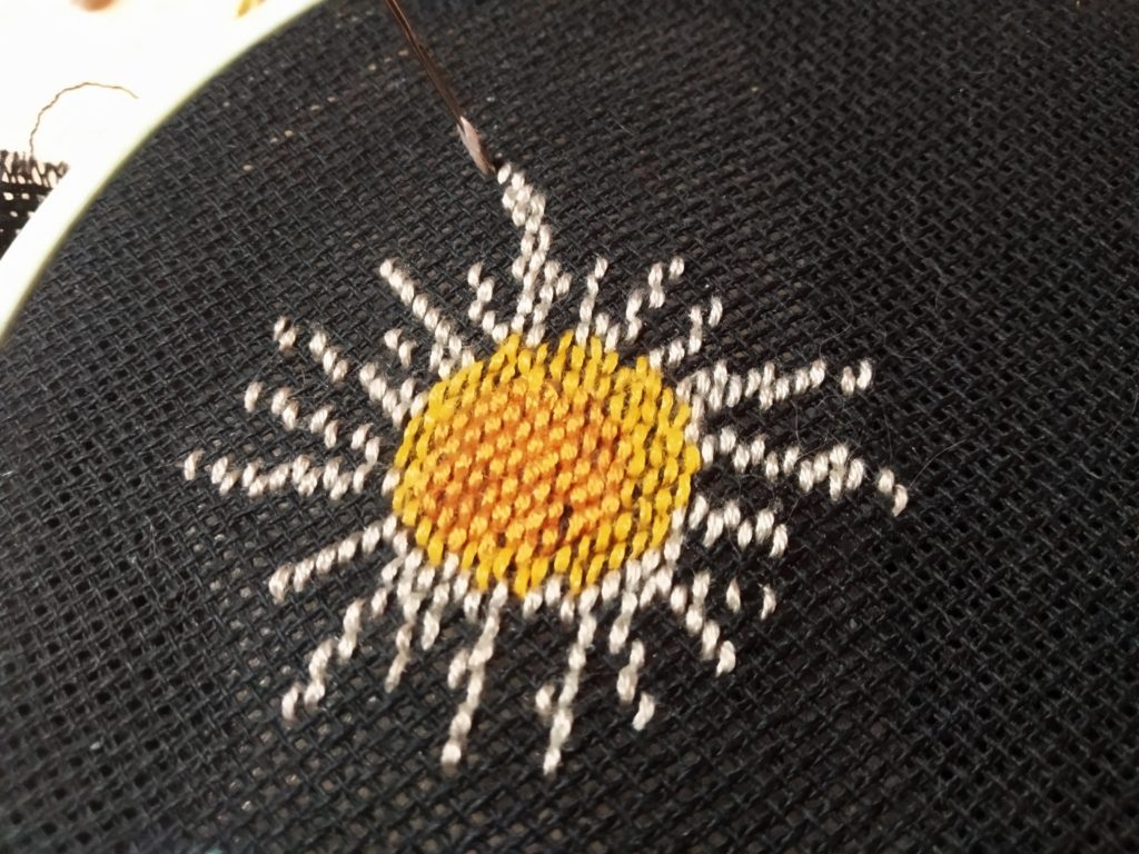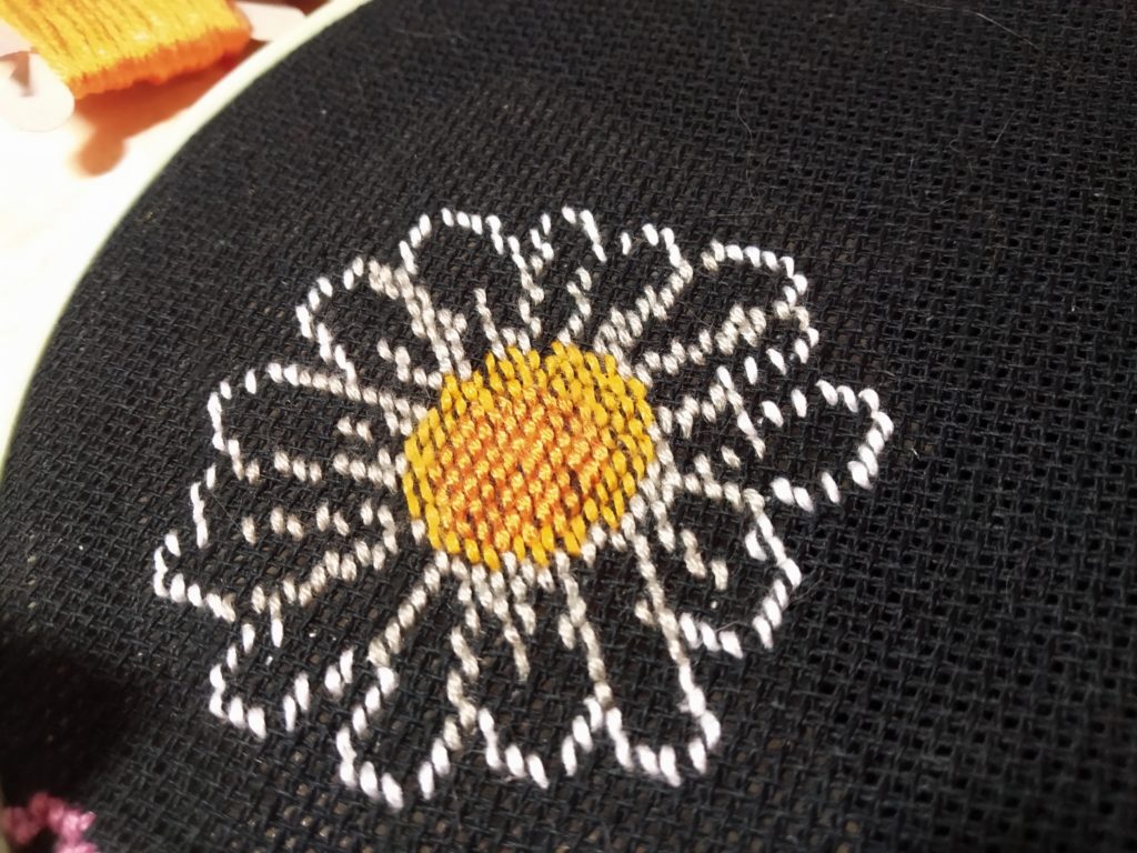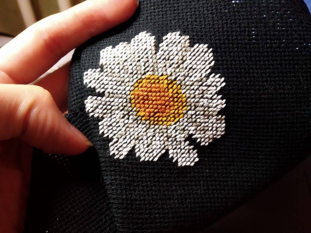 Как вышить ромашки крестиком на текстиле