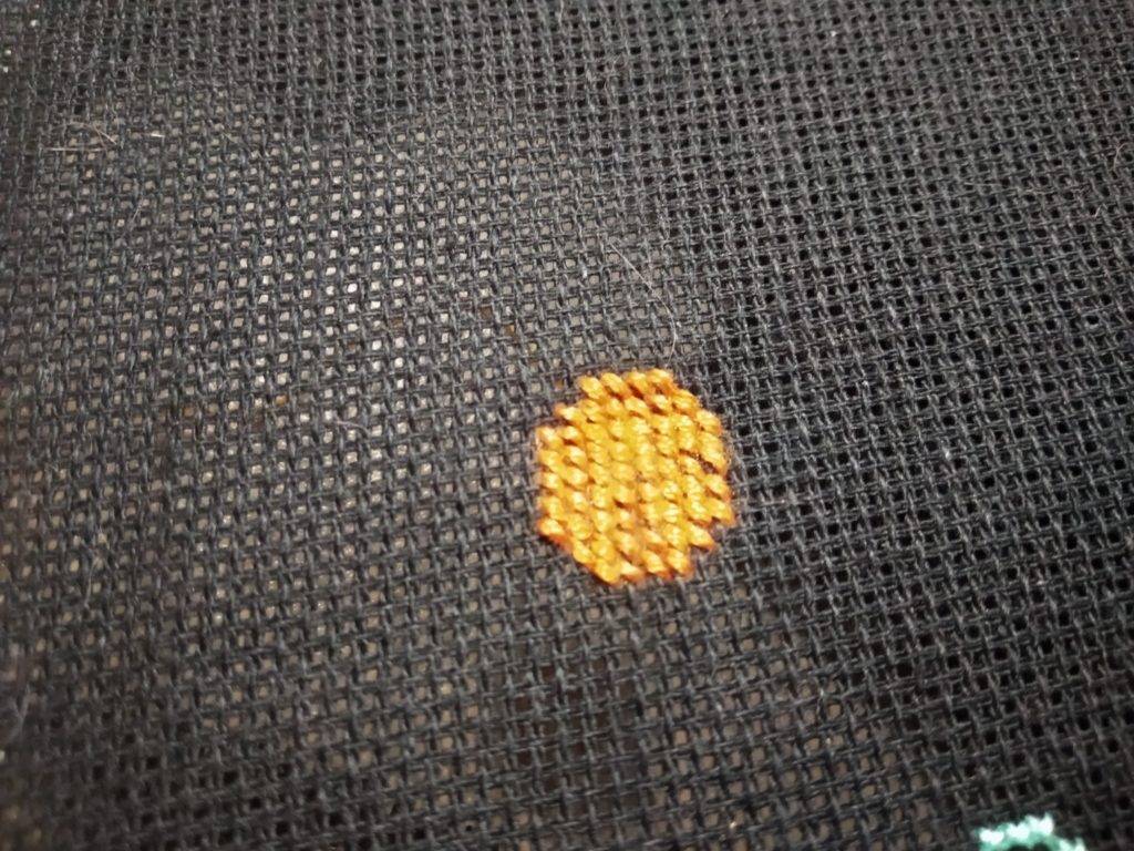 Нитка мулине слаживается в несколько сложений и выводится с изнаночной стороны на лицевую. При этом не должно быть никаких узелков. Конец нити можно закрепить между образовавшимися в дальнейшем стежками. Вышивка крестиком может начинаться с любого места на схеме