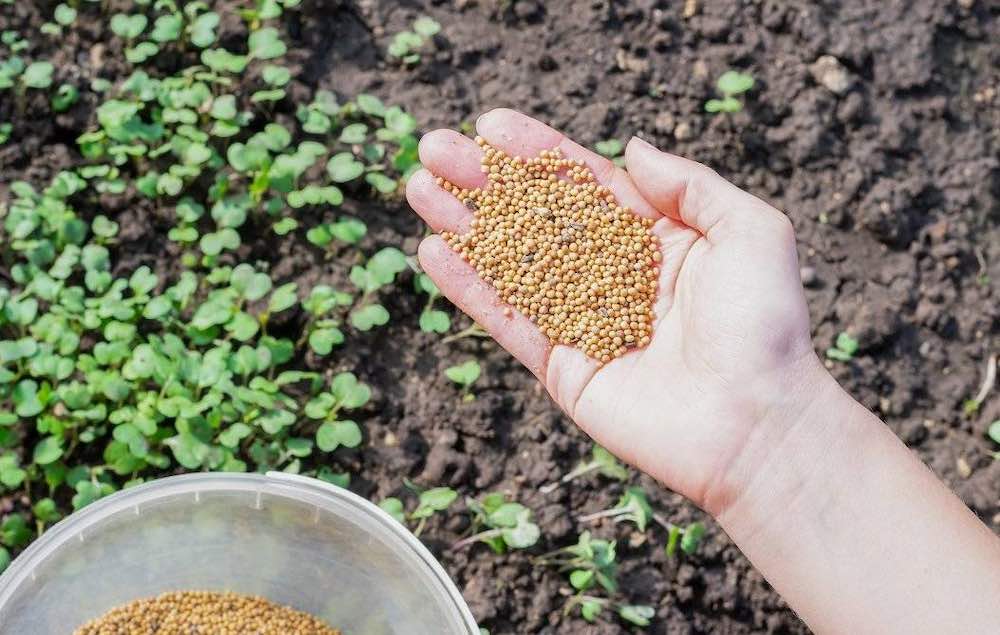 Помогает структурировать почву и нарастить слой гумуса. Горчица защищает землю от гнилей и грибковых инфекций. Растет быстро, не боится холодов и выдерживает заморозки до -5°С. Если сидерат вырос более 20см, то лучше его подрезать. Оставшегося растения хватит, укрыть и защитить грунт. Во время посадки семена не заглубляют, а распределяют граблями по всей площади теплицы.