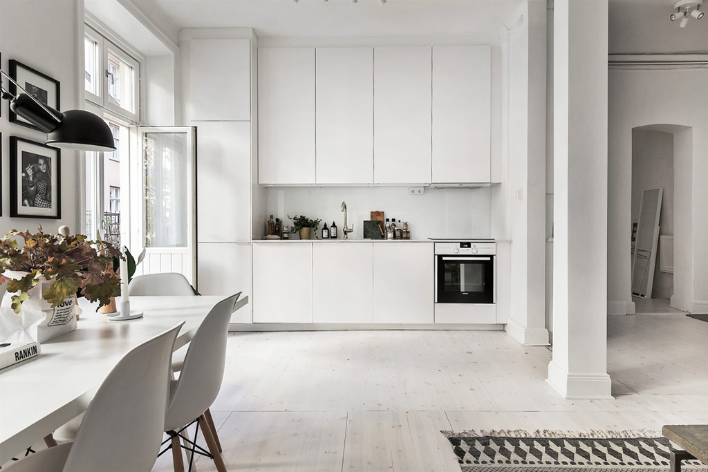 Скандинавский стиль предлагает лучшие идеи для дизайна маленькой кухни, и традиционные для этого стиля приемы – простые формы, светлые оттенки, особенный декор – позволяют визуально расширить пределы комнаты.