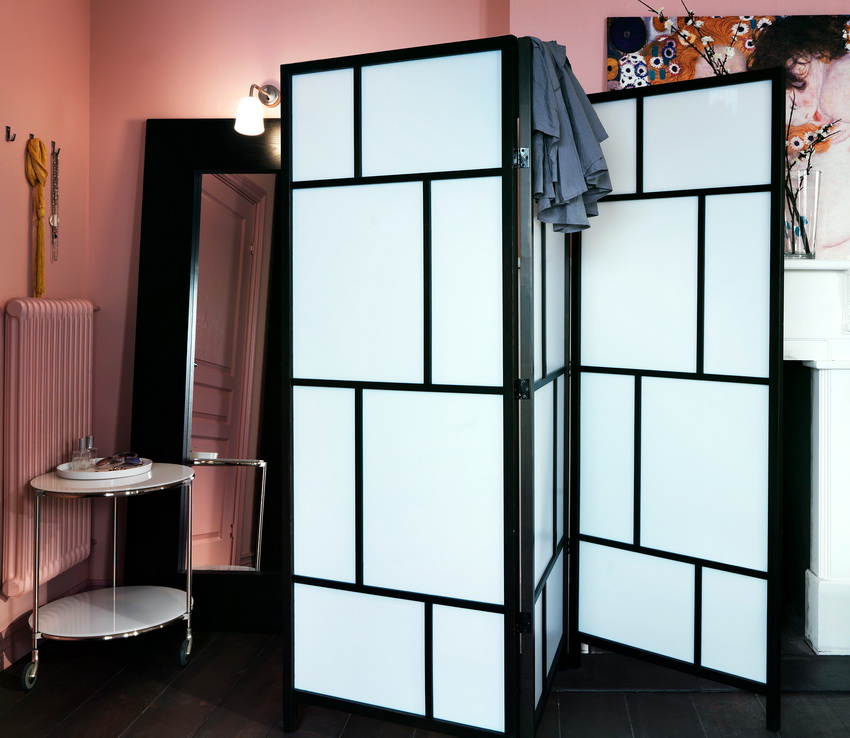 - ограниченность зонирования — выделение функциональных зон происходит исключительно визуально, поэтому ширма никак не может предотвратить проникновение людей в огороженное пространство;