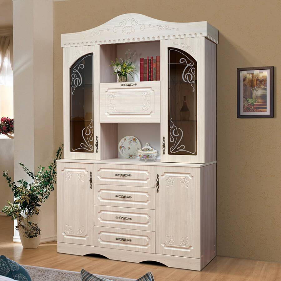 Он придется кстати, если посуду нужно спрятать, а не демонстрировать гостям. Буфеты состоят из трех ярусов. Нижний — закрытый, верхний — застекленный прозрачным или матовым стеклом, но может быть и «глухим» фасадом. Посередине между этими ярусами — небольшая открытая столешница, на которую удобно поставить посуду перед ее использованием.