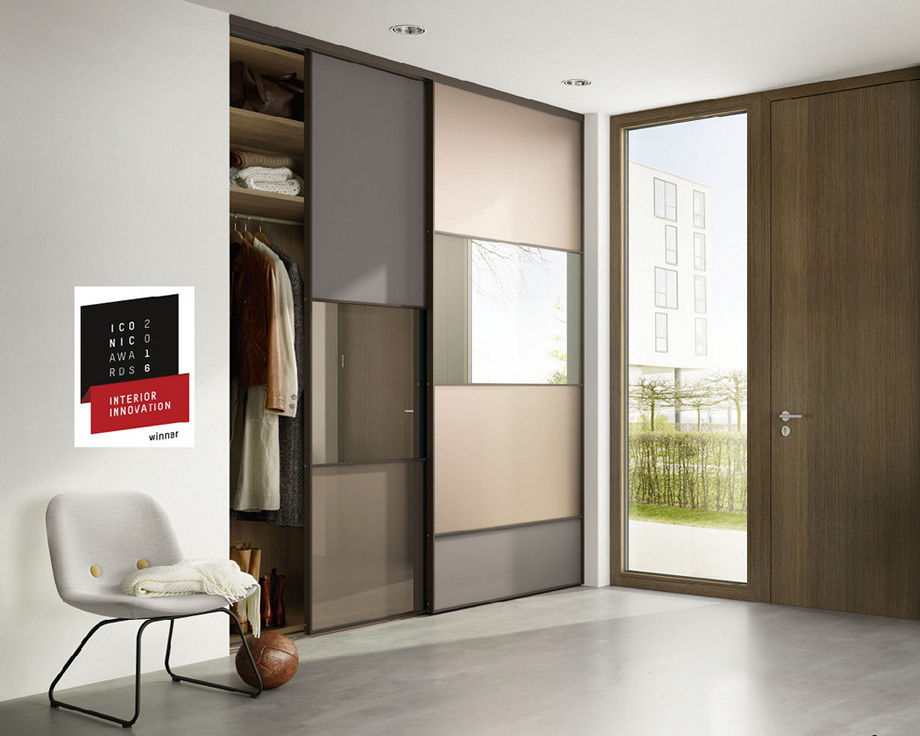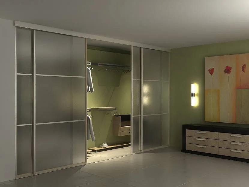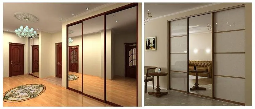 Одним из распространенных решений является выбор зеркальных дверок, способствующих мнимому увеличению пространства даже в небольших помещениях. Также набирает популярность в качестве материала и бесцветное матовое стекло.
