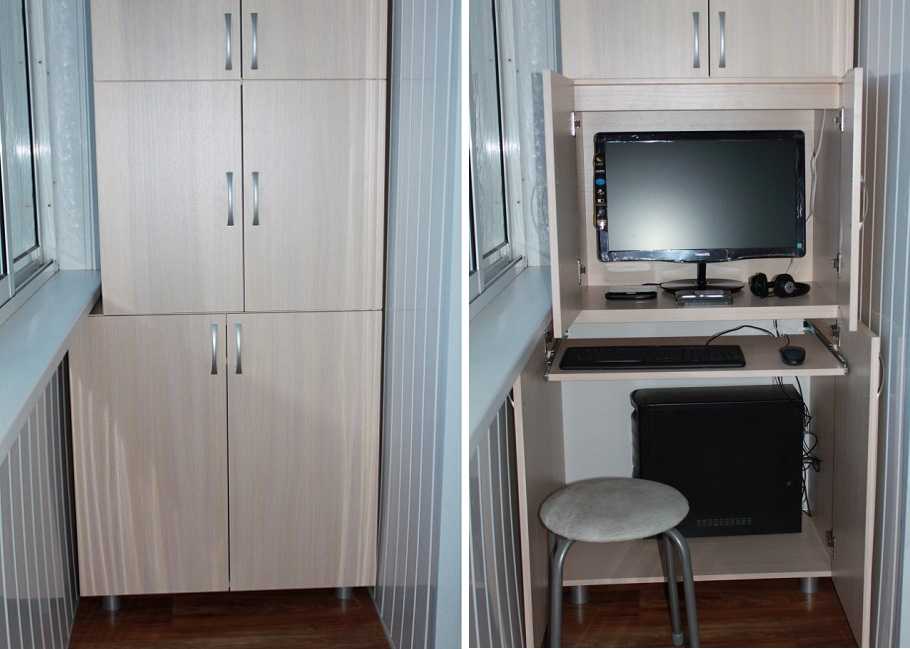 Перед покупкой материала следует изучить фото встроенных шкафов на балконе, собранных своими руками. Это поможет определить, как будет выглядеть конструкция в готовом виде.