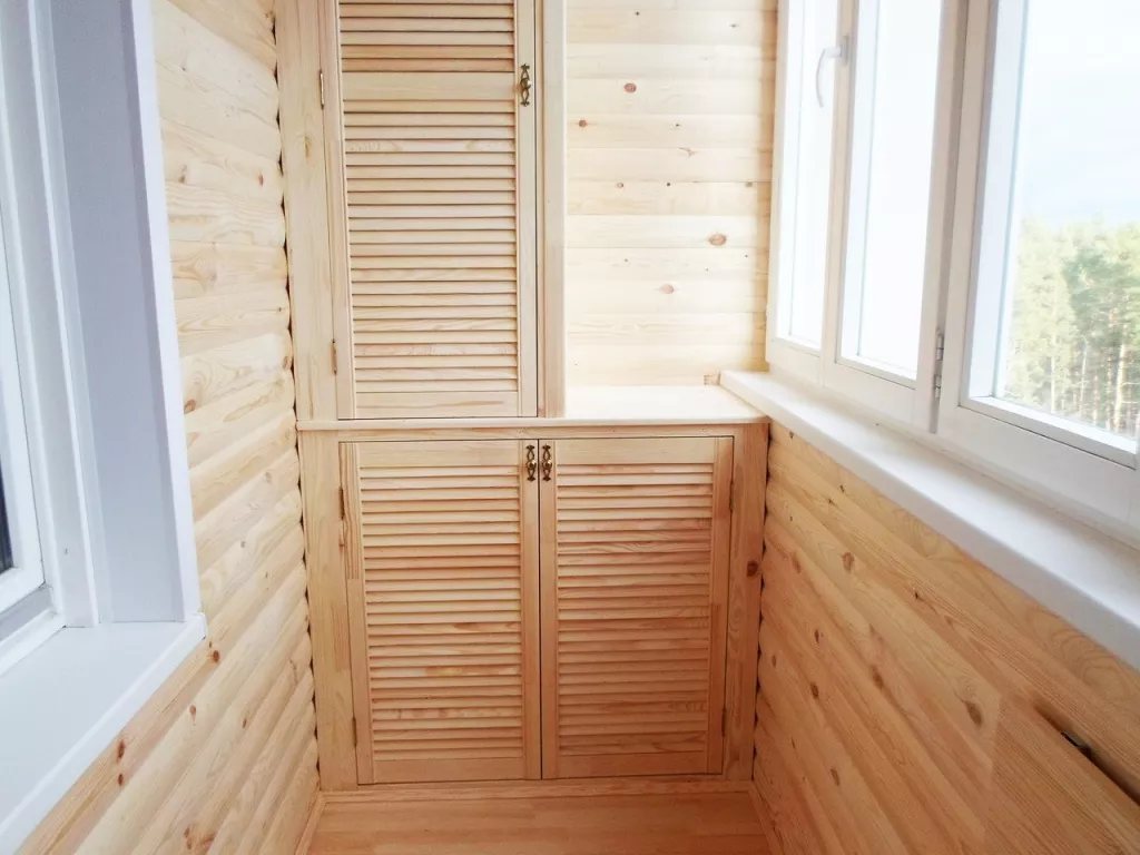 Для сохранения всех качеств встроенный шкаф на балконе регулярно обрабатывают антигрибковыми пропитками и лакокрасочными материалами. В противном случае деревянные элементы быстро покрываются плесенью, трескаются и приходят в полную негодность. Также к недостаткам относят дороговизну натуральной древесины.