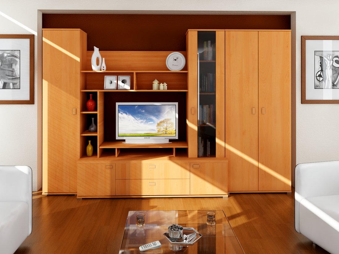 - Многофункциональность. Шкаф-стенка должен не только хранить вещи, он должен служить в качестве подставки для различной техники (телевизора, музыкального центра), семейных фотографий, красивой посуды и других предметов;